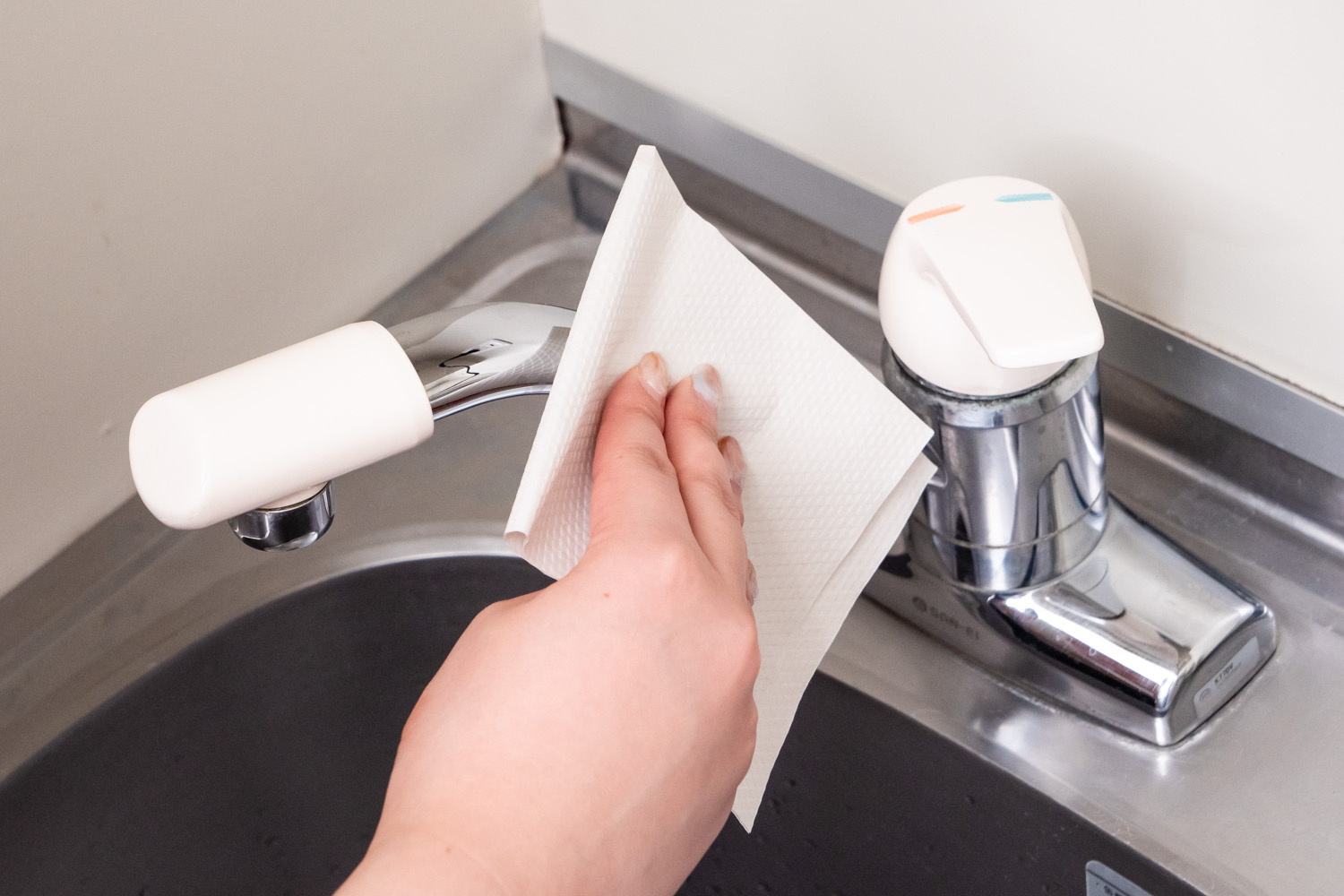 丈夫でコシのある紙質と吸水性の高さにより、1枚でしっかり拭き取ることができます。
