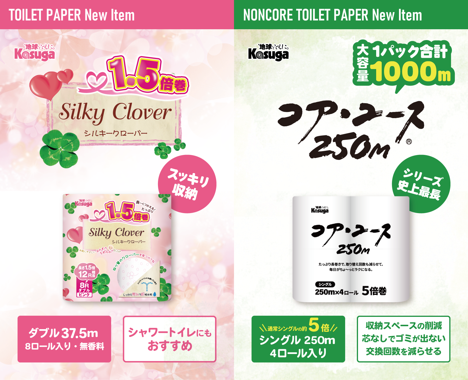 Kasugaのトイレットペーパーに1.5倍巻、芯なしトイレットペーパーに史上最長の製品が登場!